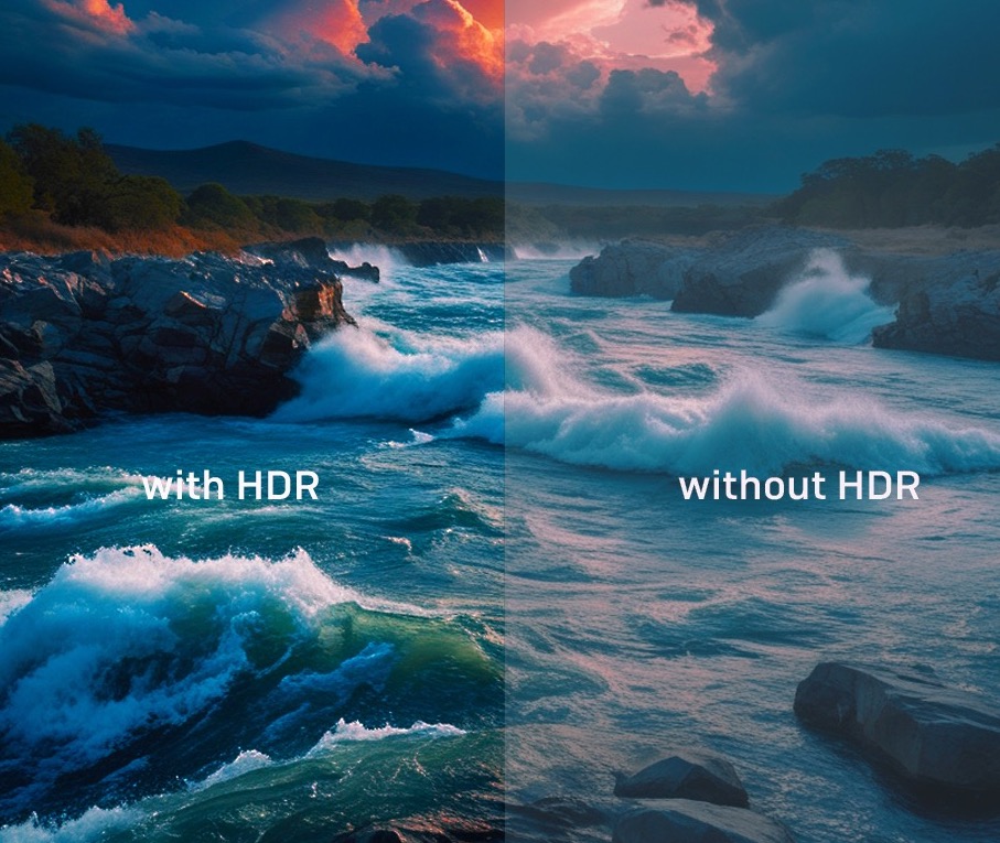 HDR 技術透過更廣的對比度和色彩範圍顯著提升視覺體驗,使暗部畫面更深邃細緻,亮部畫面更生動逼真。